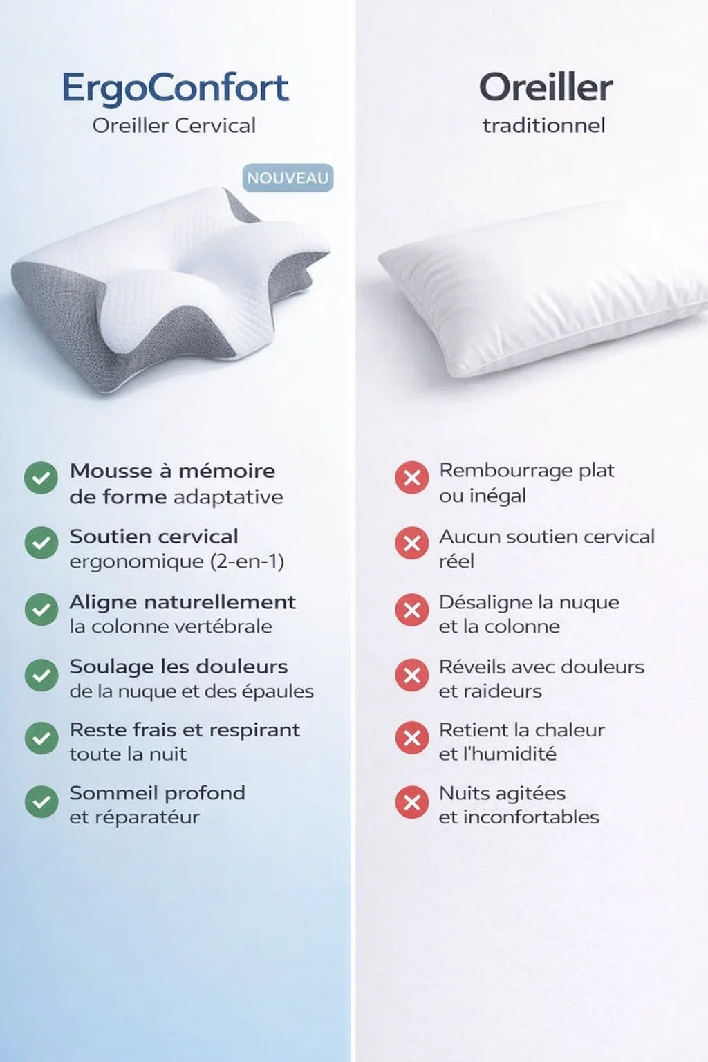 d’alignement naturel, cet oreiller ergonomique accompagne la courbure physiologique